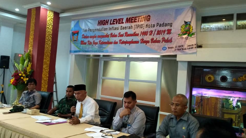 High Level Meeting Tim Pengelola Inflasi Daerah (TPID) Kota Padang diikuti Dandim 0312 Padang, Kepala BI Perwakilan Sumbar, Bulog Regional Sumbar, Pertamina dan Hiswana Migas, PPI, BPS Kota Padang, Forum Komunikasi Distributor Padang, Kadin Padang, Kemenag Kota Padang, Baznas Kota Padang, dan SKPD terkait Pemko Padang.