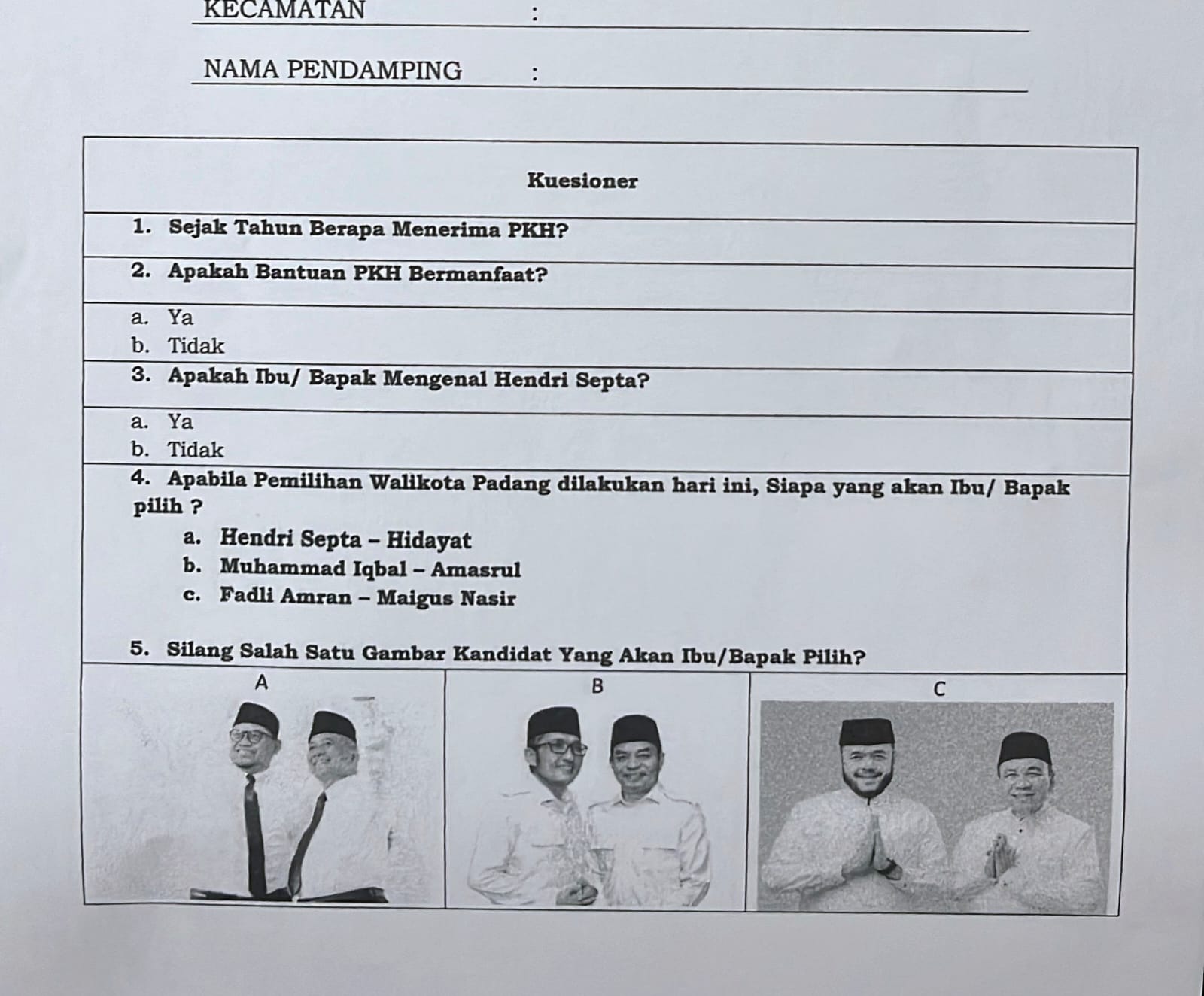 Padang – Jelang Pilkada Kota Padang, muncul dugaan praktik survei melalui kuisioner yang mengarah pada salah satu pasangan calon.